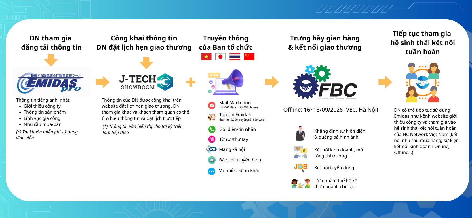 FBC ASEAN hứa hẹn mang lại nhiều cơ hội quảng bá thông tin và kinh doanh tiềm năng cho cộng đồng doanh nghiệp ngành chế tạo, khi mang tới cho doanh nghiệp tham gia không chỉ đơn thuần là một dịch vụ triển lãm, mà là một hệ sinh thái kết nối xuyên suốt trước, trong, sau sự kiện.